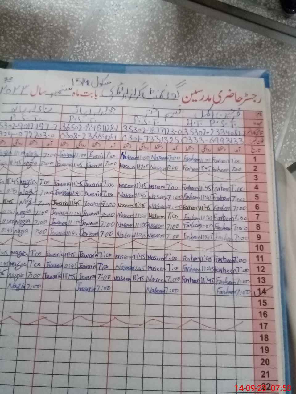| Name: FA**** AK**** Designation: (School Headmaster's/Headmistress's) PST Phone/Cell Number: 03**** |