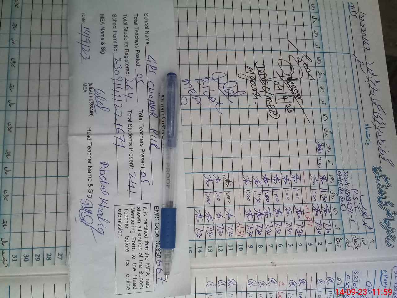 | Attendance Register | Head Teacher | MEA with School | Visit Proof |