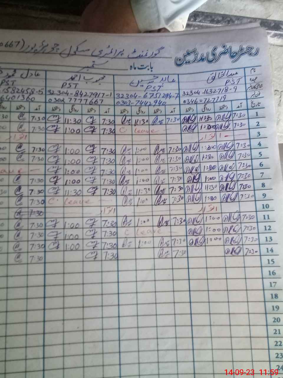 | Name: AB**** KH**** Designation: (School Headmaster's/Headmistress's) PST/PTC/JV Phone/Cell Number: 03**** |