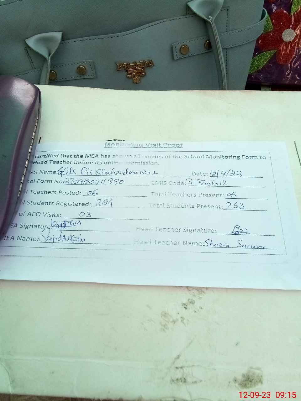 | EMIS Code: 31330612 | Name of School: GGPS PIR SHAHIDAN NO.2 | |||