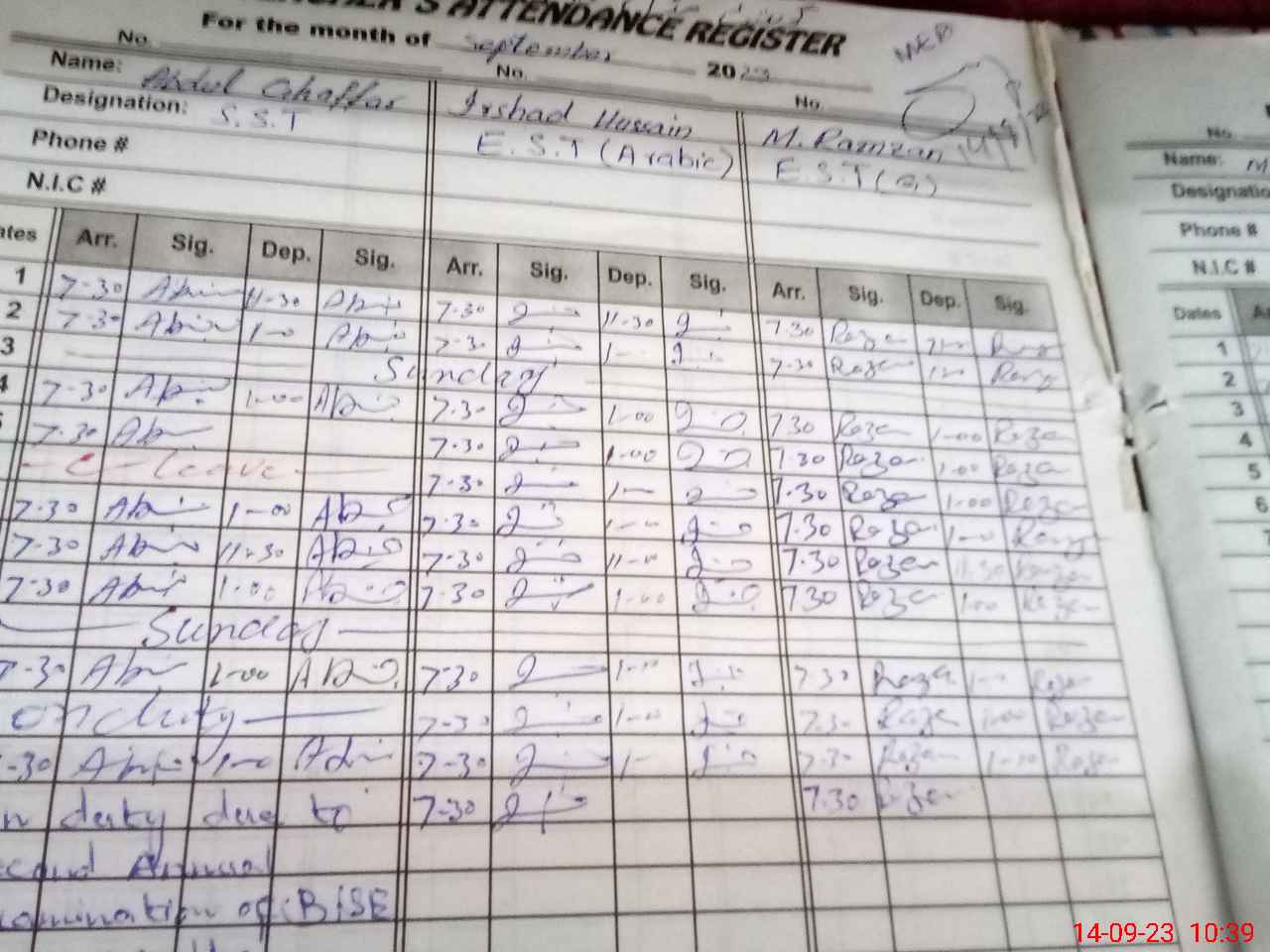 | 35**** | Ab**** Gh**** | 1 | 0 | 0 | 0 | 0 | 0 | 0 | 0 | 0 | 0 | Exam Duty | |