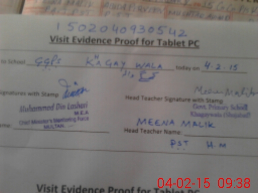 | Attendance Register | Head Teacher | MEA with School | Visit Proof |
