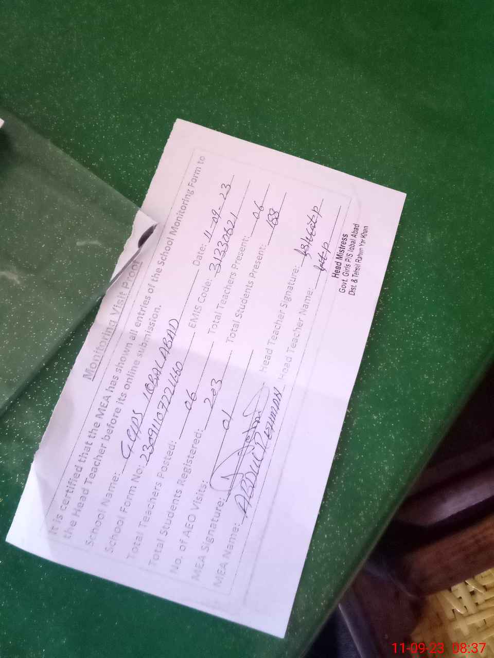 | Name: IS**** PA**** Designation: (School Headmaster's/Headmistress's) PST Phone/Cell Number: 03**** |