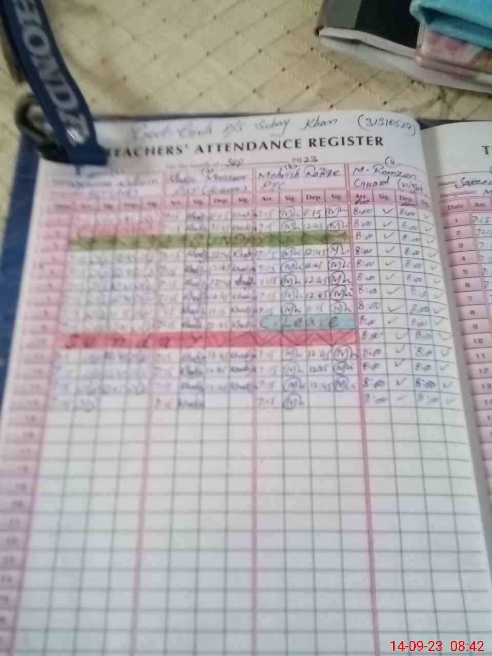 | Attendance Register | Head Teacher | MEA with School | Visit Proof |