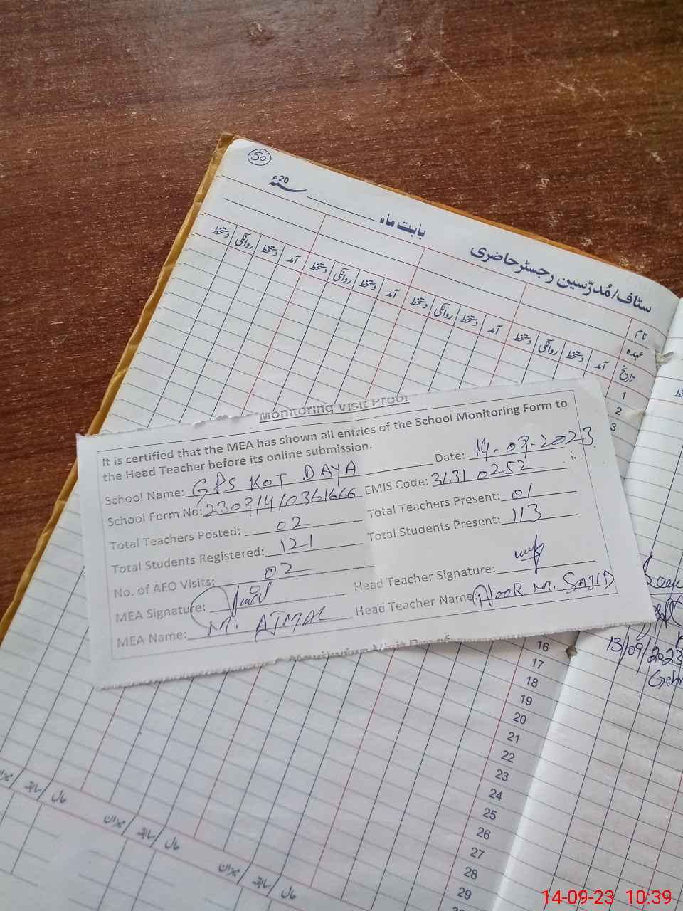 | EMIS Code: 31310252 | Name of School: GPS KOT DAYA | |||