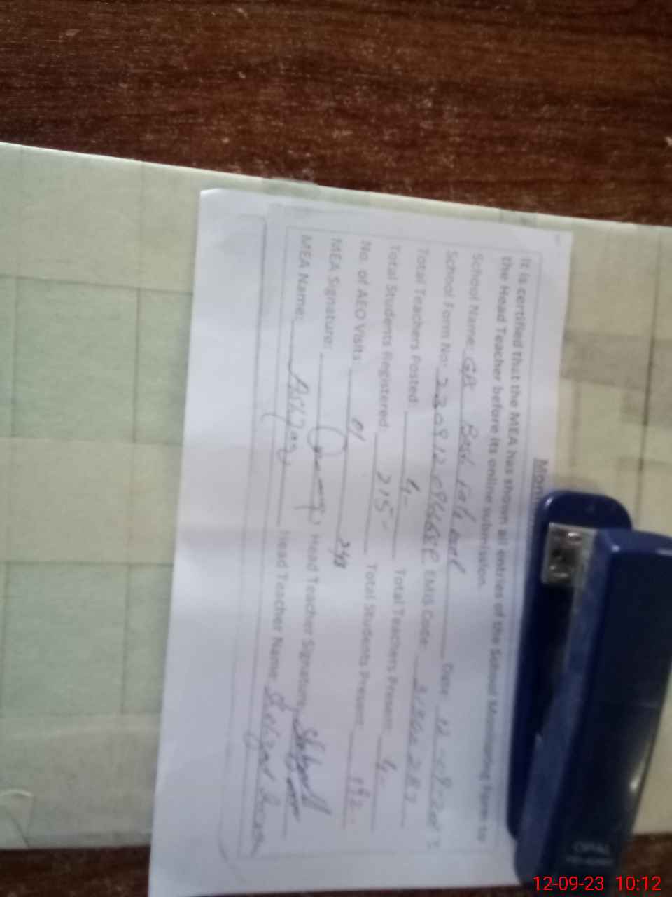 | Attendance Register | Head Teacher | MEA with School | Visit Proof |