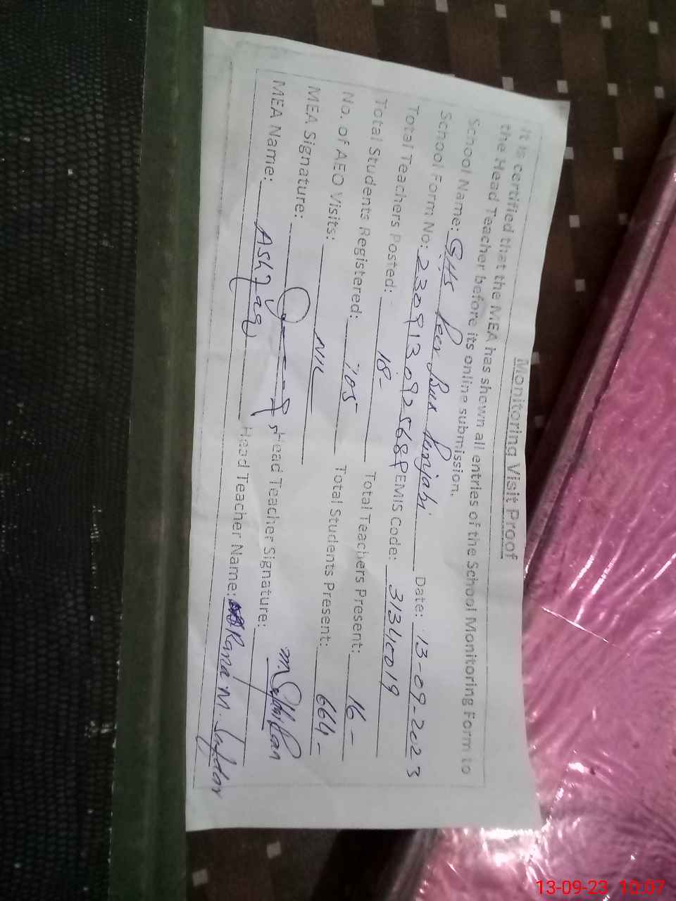 | Certified that this School was Inspected by the Undersigned MEA/DMO Today and the Information Stated Above is as Per Record. | |||||