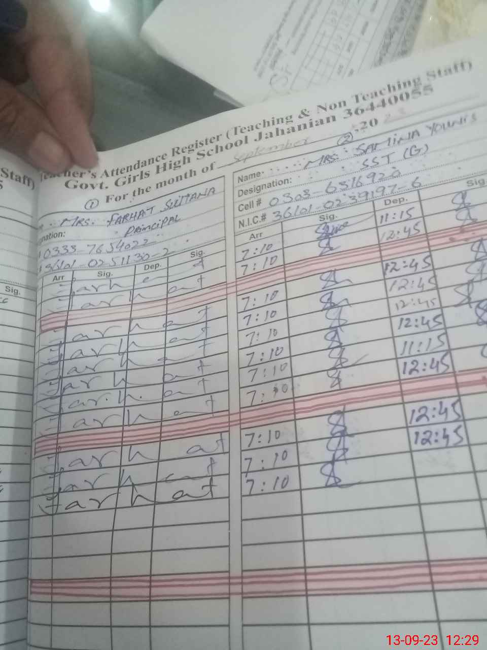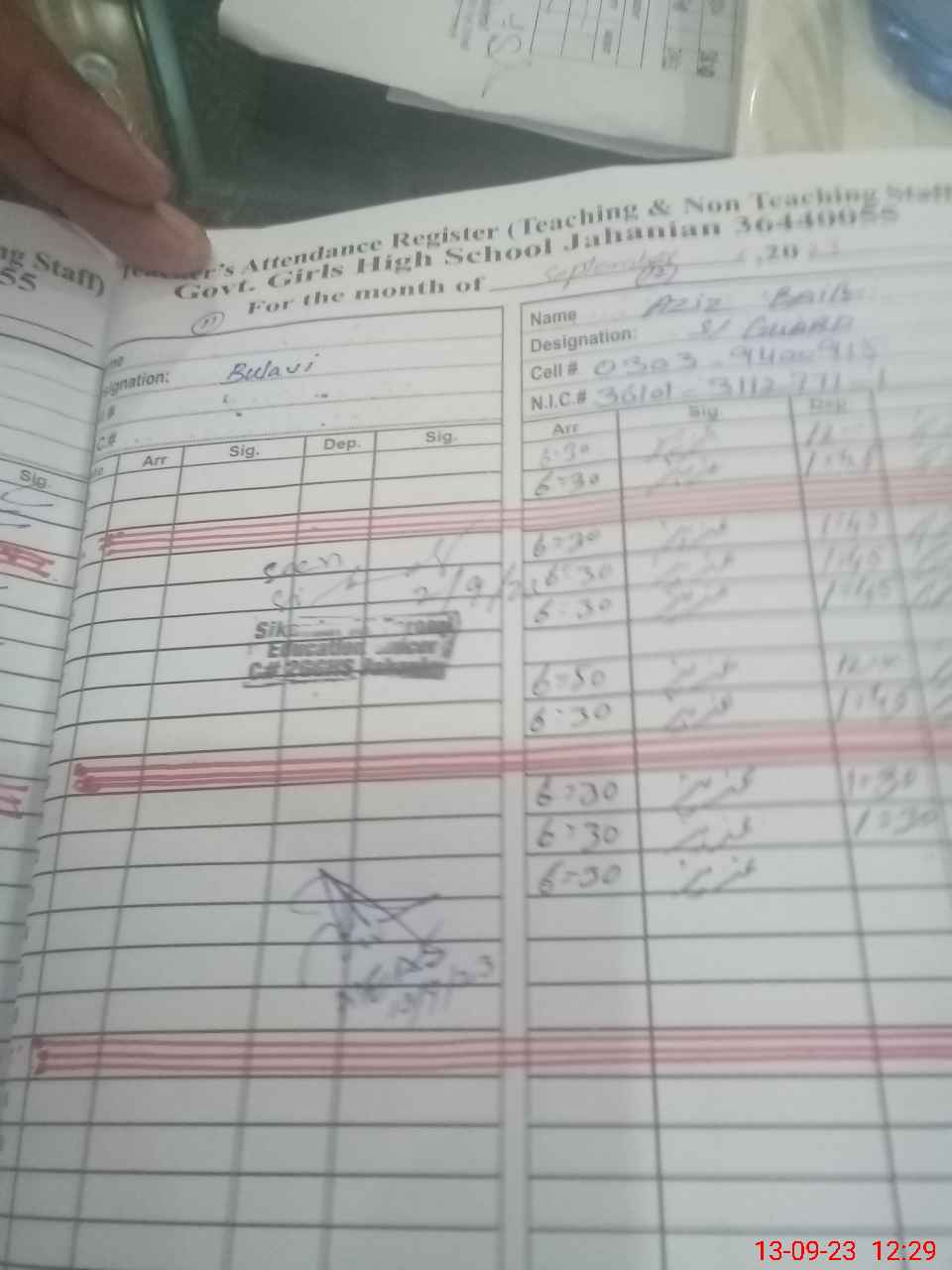 | Name: FA**** SU**** Designation: (School Headmaster's/Headmistress's) PRINCIPAL Phone/Cell Number: 03**** |