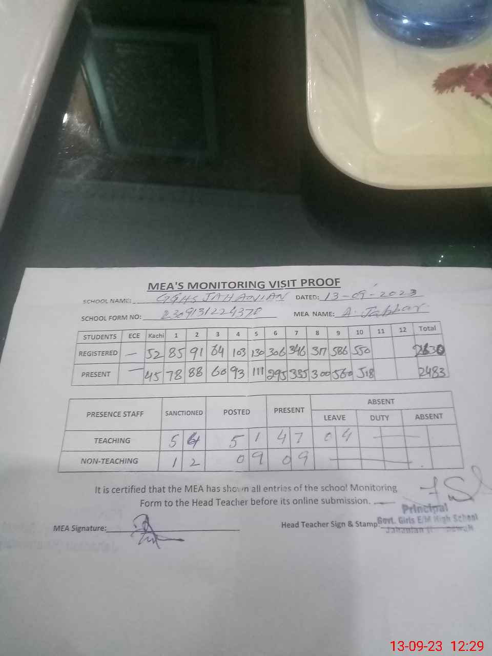 | EMIS Code: 36440055 | Name of School: GGHS JAHANIAN, JAHANIAN | |||