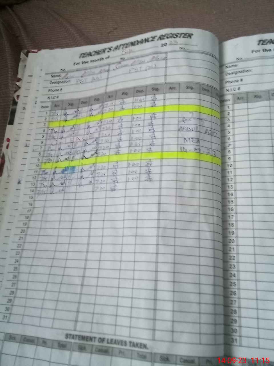| Name: MU**** IS**** KH**** Designation: (School Headmaster's/Headmistress's) S.S.T.(GEN) Phone/Cell Number: 03**** |