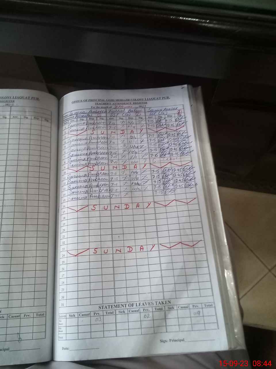 | Name: SA**** AM**** Designation: (School Headmaster's/Headmistress's) PRINCIPAL Phone/Cell Number: 03**** |