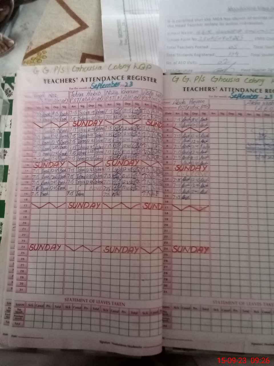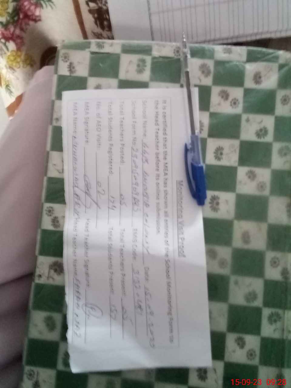| Attendance Register | Head Teacher | MEA with School | Visit Proof |