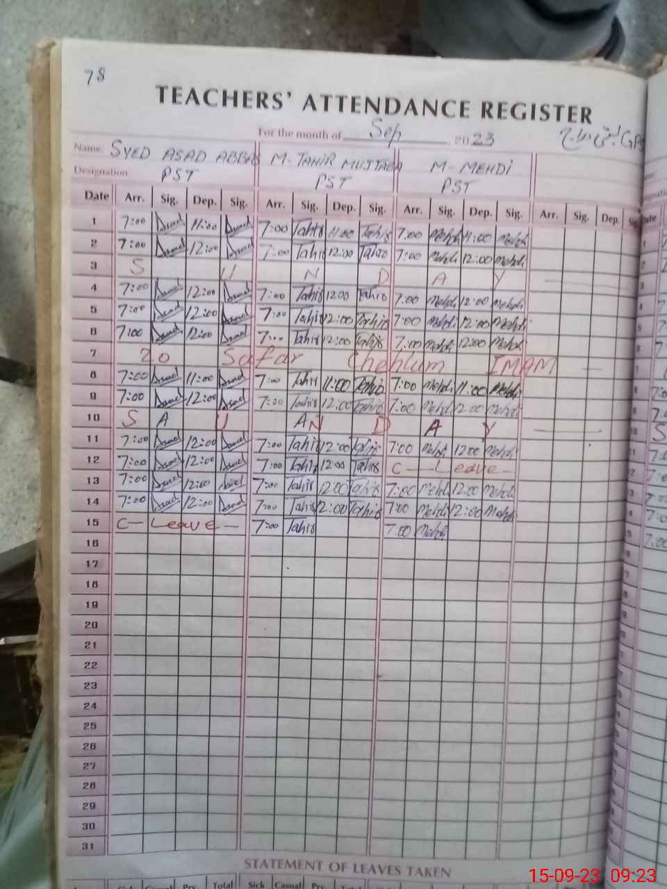 | Name: Mu**** Ir**** Designation: (School Headmaster's/Headmistress's) PST Phone/Cell Number: 03**** |
