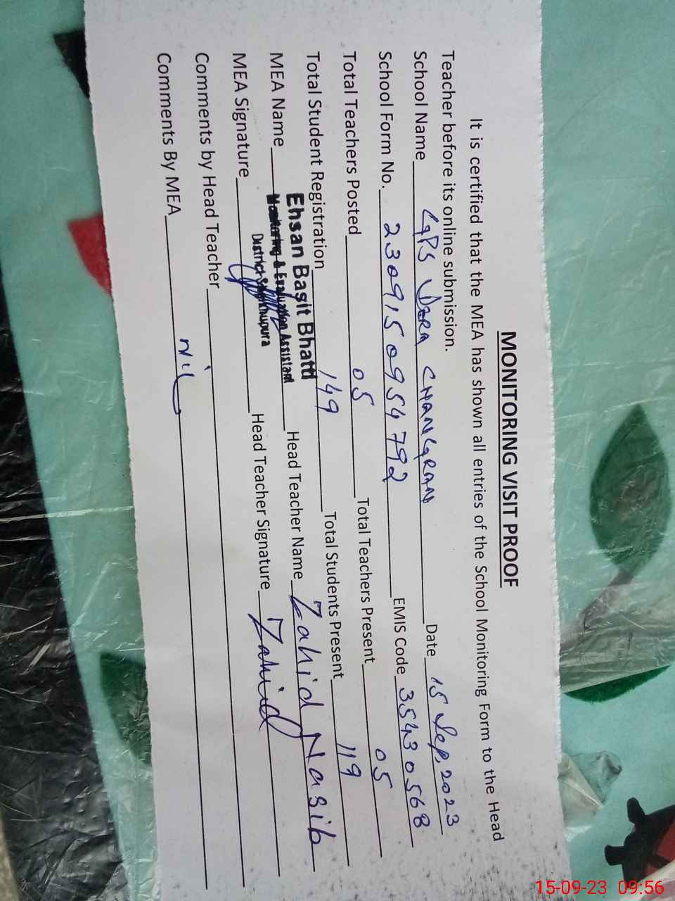| EMIS Code: 35430568 | Name of School: GPS DERA CHANGRAN | |||