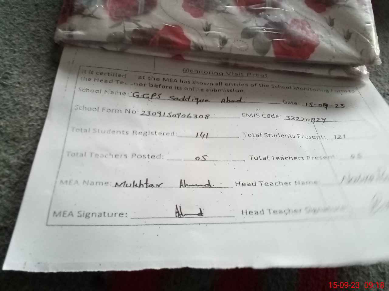 | EMIS Code: 33220829 | Name of School: GGPS SIDDIQUE ABAD | |||