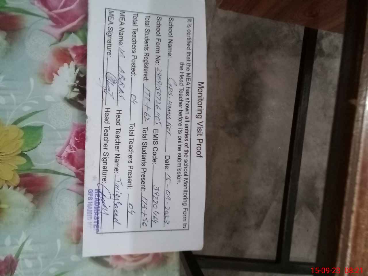 | EMIS Code: 39220464 | Name of School: GPS HAMEED KOT (MEHMOOD KOT) | |||