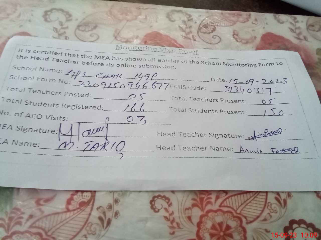 | EMIS Code: 31340317 | Name of School: GPS CHAK 149/P | |||
