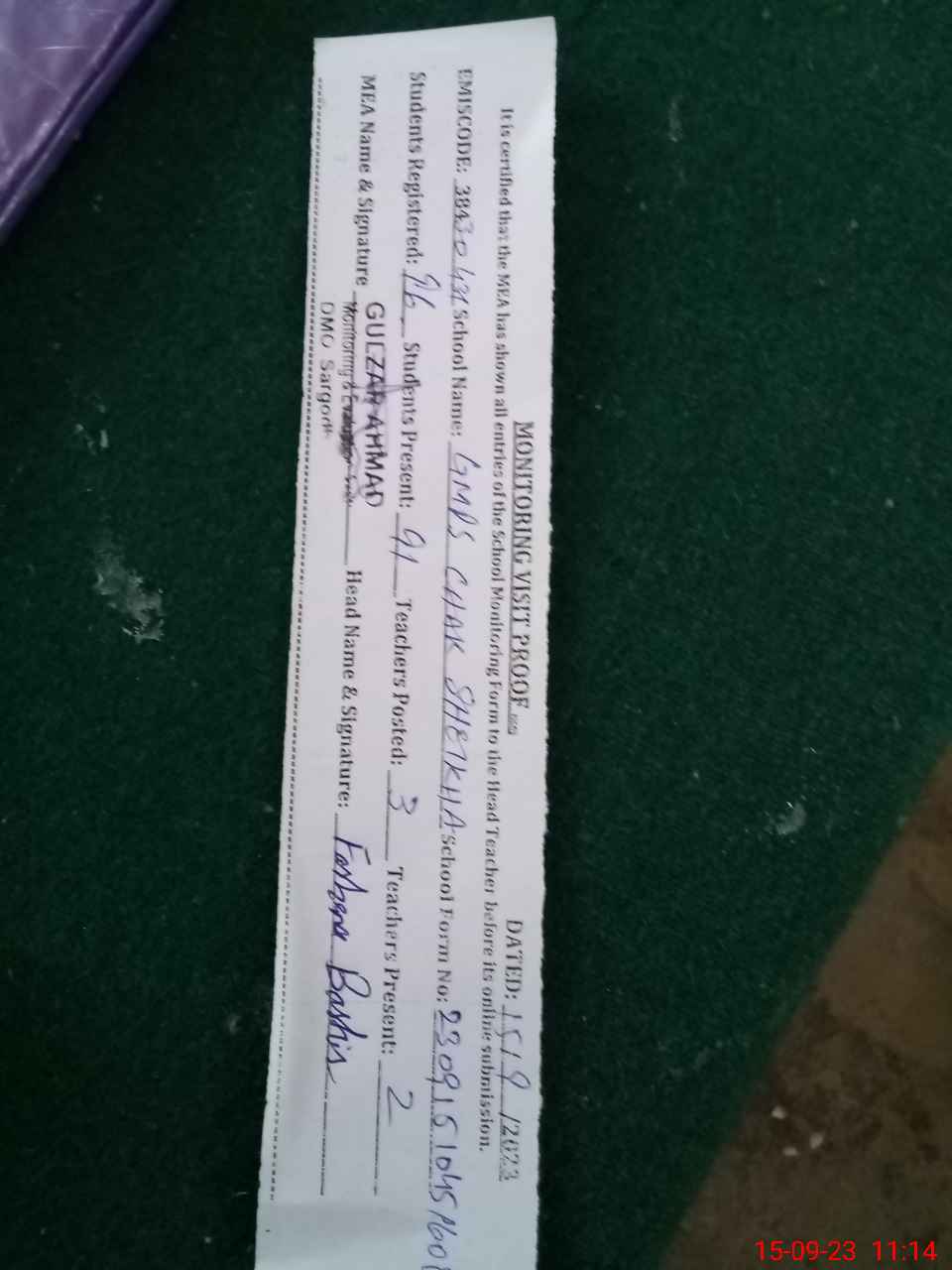 | EMIS Code: 38430431 | Name of School: GMPS CHAK SHEIKHA | |||
