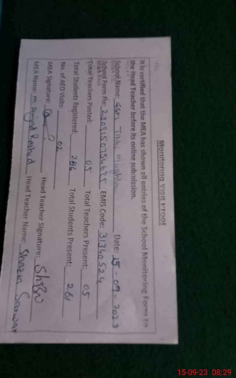 | EMIS Code: 31340524 | Name of School: GGPS TIBBI MUGHALAN | |||