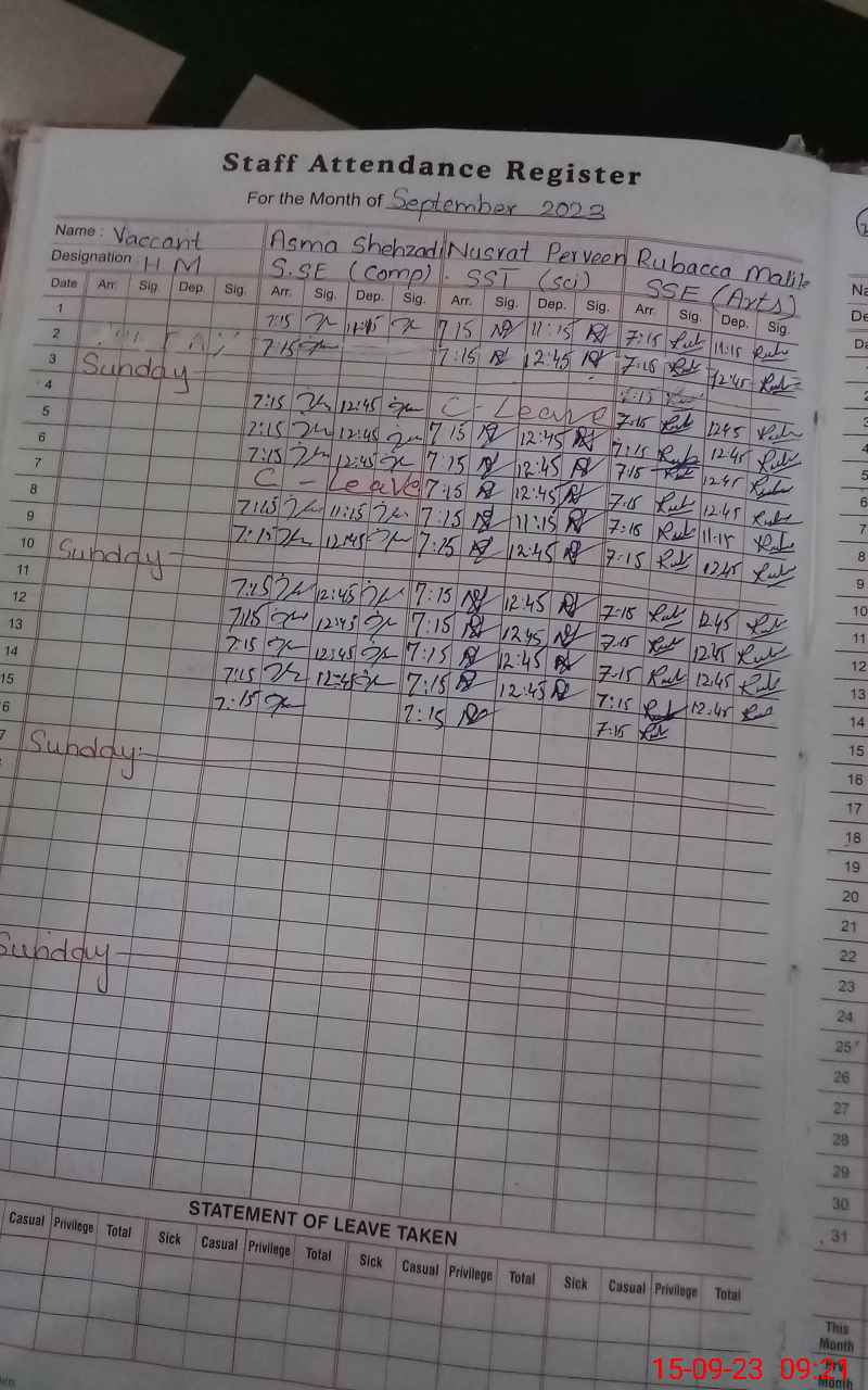 | 31**** | Ra**** Me**** | 2 | 0 | 0 | 31 | 0 | 0 | 0 | 0 | 0 | 0 | Absent (Un-Authorized) | |