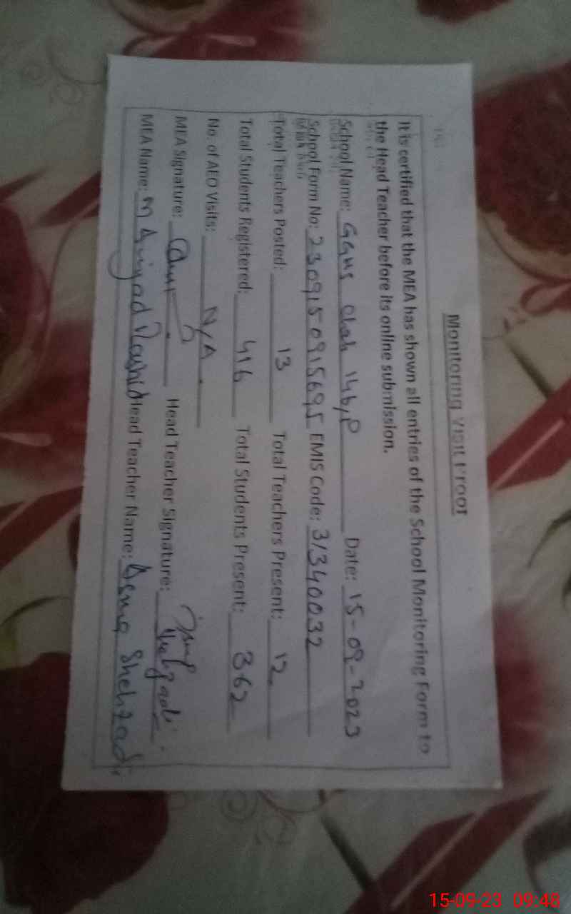 | Certified that this School was Inspected by the Undersigned MEA/DMO Today and the Information Stated Above is as Per Record. | |||||