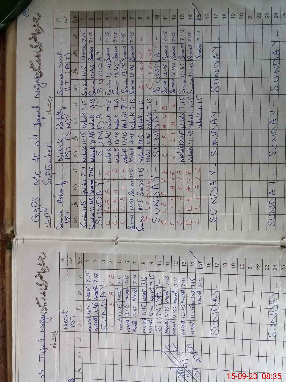 | Monitoring Date: 15-09-2023 | Start Time: 15-09-2023 08:26 AM | End Time: 15-09-2023 09:08 AM | Name of MEA: MU**** HA**** | |