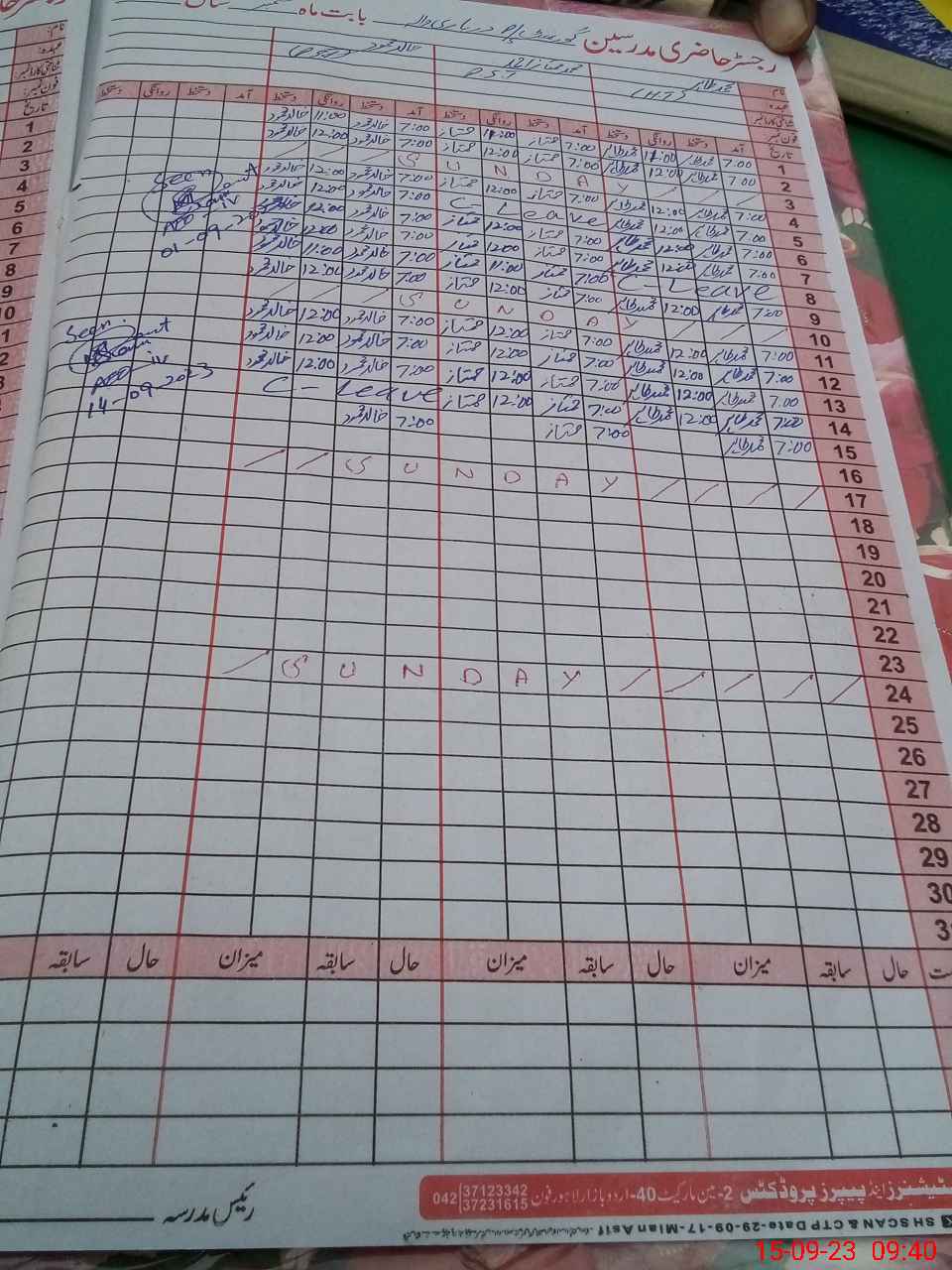 | CNIC | Full Name | Designation | R/C | Absence During Last Calender Month |