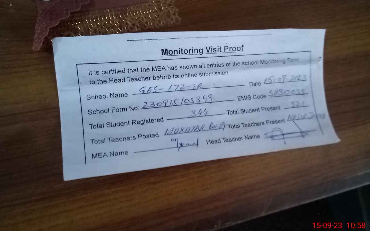 | EMIS Code: 31130035 | Name of School: GES CHAK 172/7-R | |||