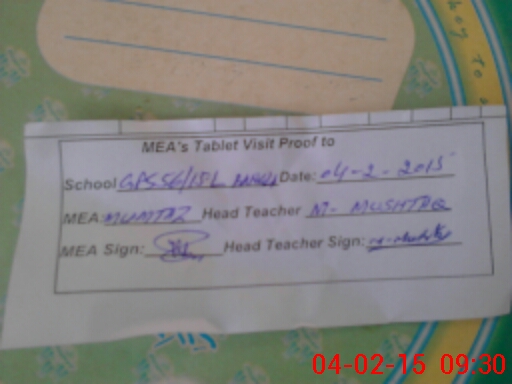 | Attendance Register | Head Teacher | MEA with School | Visit Proof |