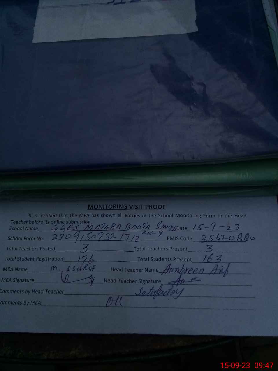 | EMIS Code: 35620880 | Name of School: GGES MATABA BOOTA SINGH | |||
