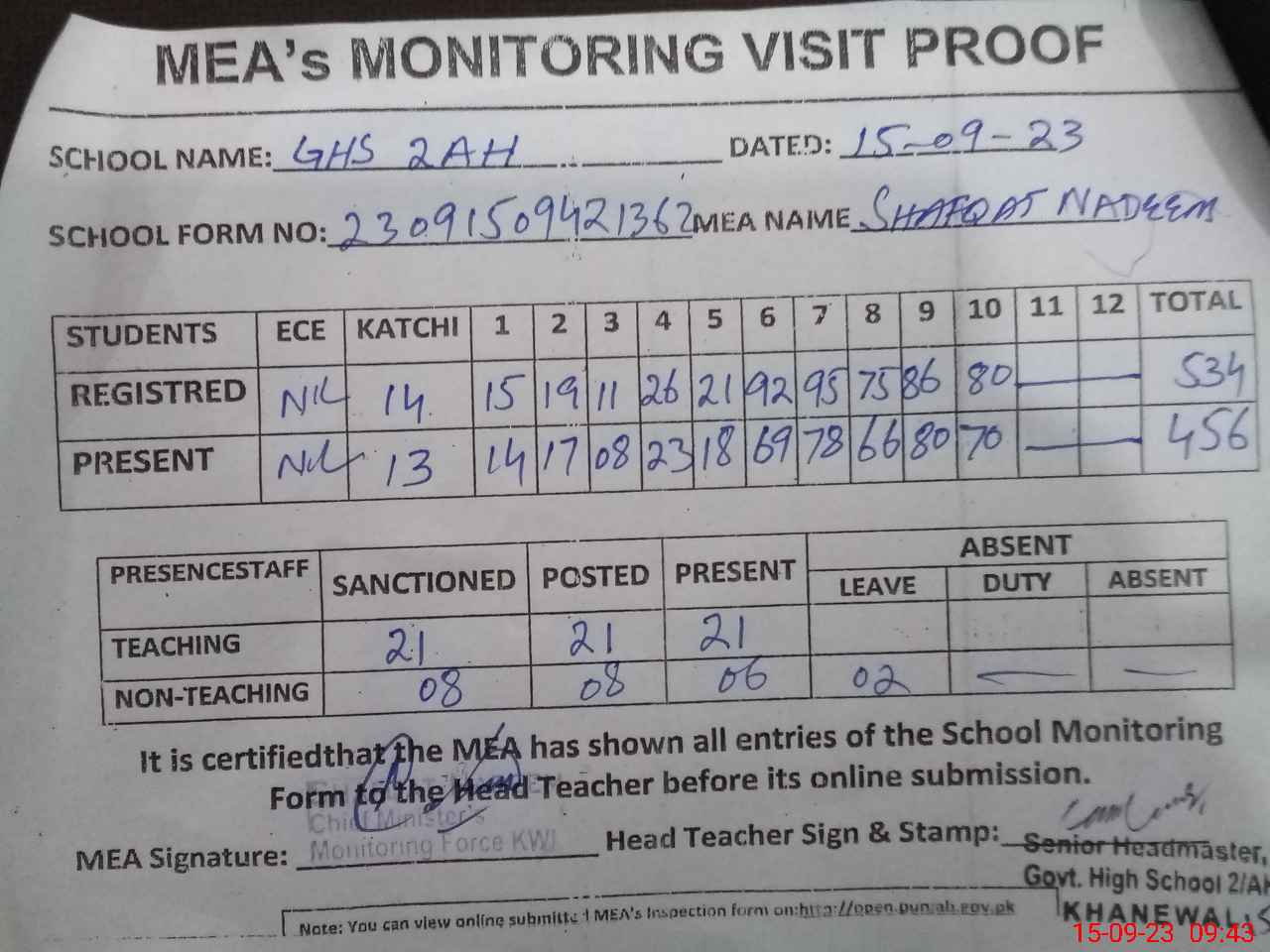 | EMIS Code: 36420017 | Name of School: GHS 2/AH, 5/AH, KHANEWAL | |||