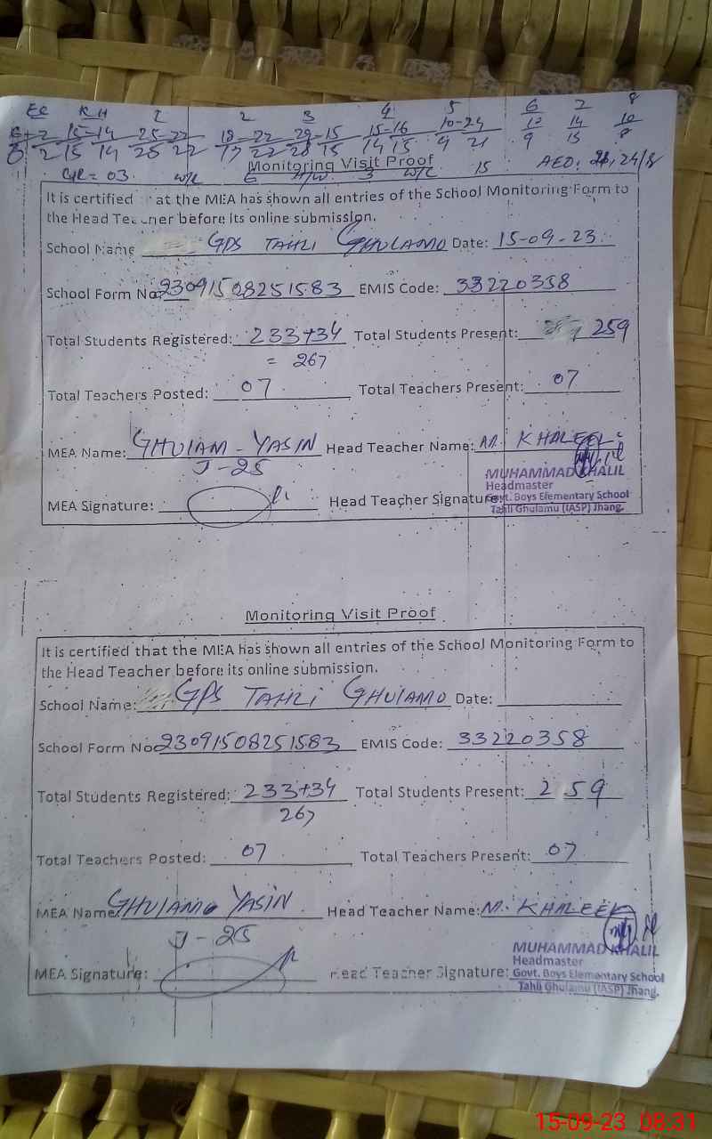 | EMIS Code: 33220358 | Name of School: GPS TAHLI GHULAMU | |||