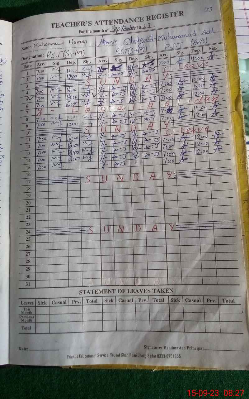 | Name: Mu**** Sh**** Ta**** Designation: (School Headmaster's/Headmistress's) PST Phone/Cell Number: 03**** |