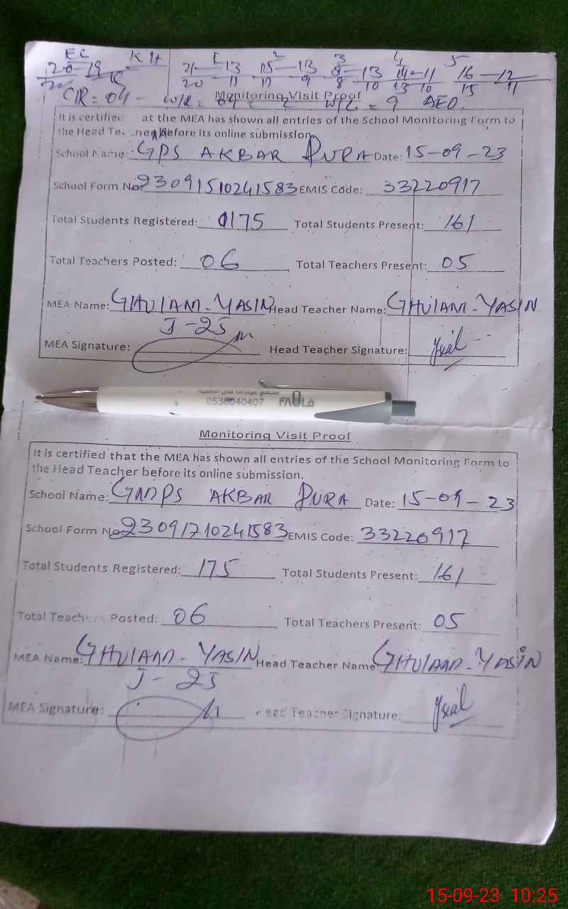 | EMIS Code: 33220917 | Name of School: GMPS AKBAR PURA | |||