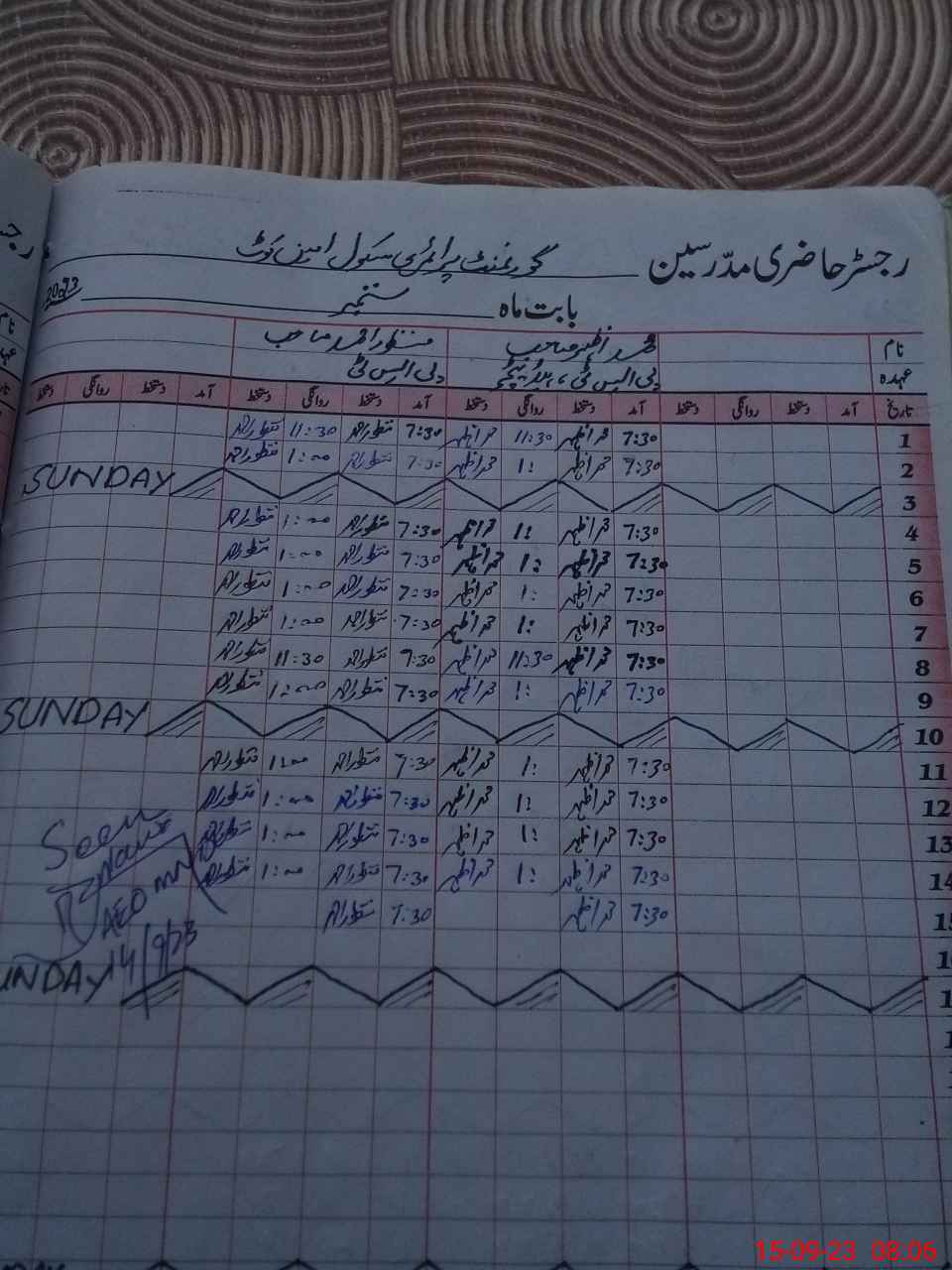 | Name: MU**** Az**** Designation: (School Headmaster's/Headmistress's) PST Phone/Cell Number: 03**** |