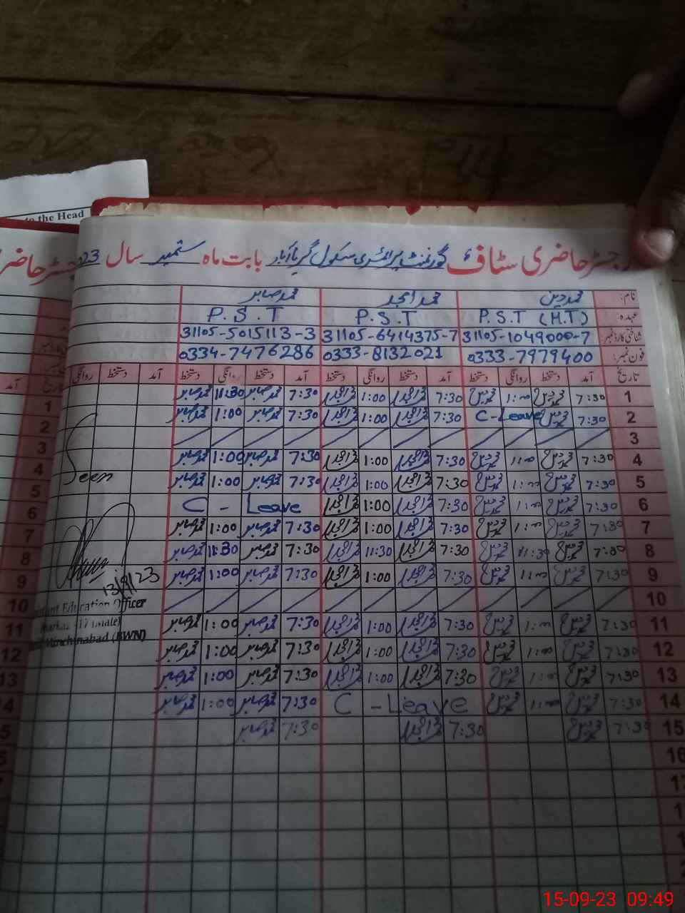 | Name: Ka**** Hu**** Designation: (School Headmaster's/Headmistress's) PST Phone/Cell Number: 03**** |