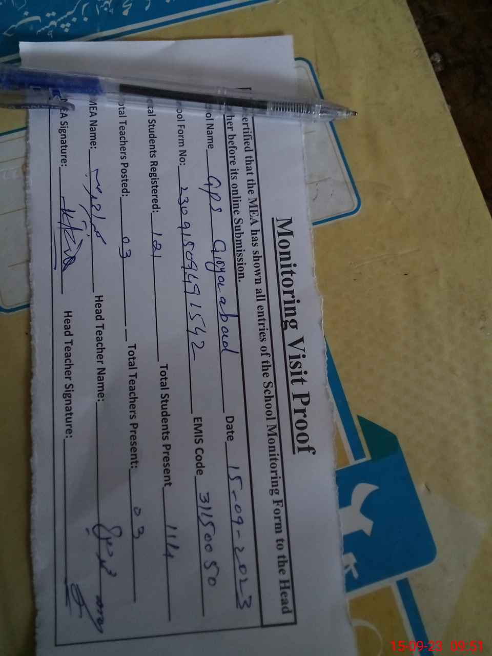 | EMIS Code: 31150050 | Name of School: GPS GIRIA ABAD | |||