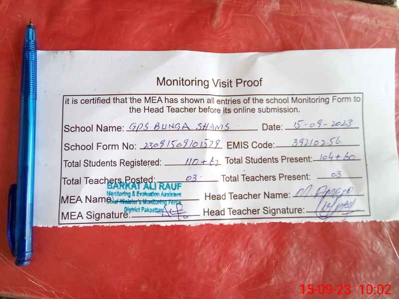 | EMIS Code: 39210256 | Name of School: GPS BUNGA SHAMS | |||