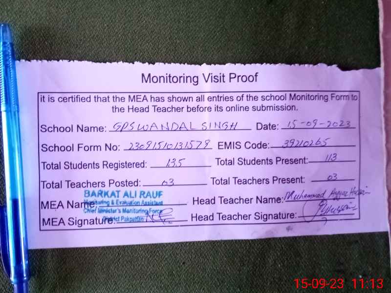 | EMIS Code: 39210265 | Name of School: GPS WANDAL SINGH | |||