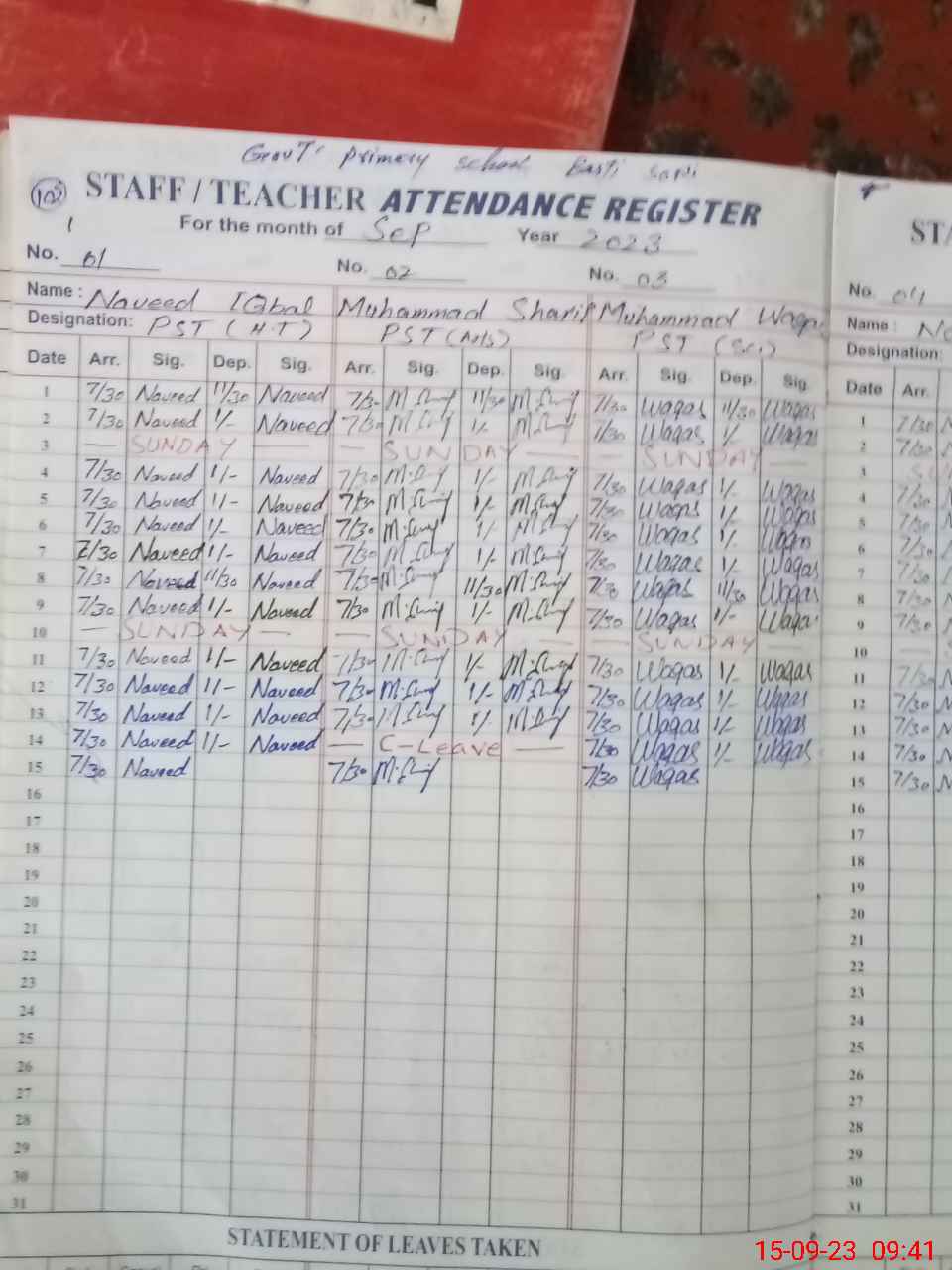 | Name: NA**** IQ**** Designation: (School Headmaster's/Headmistress's) PST/PTC/JV Phone/Cell Number: 03**** |