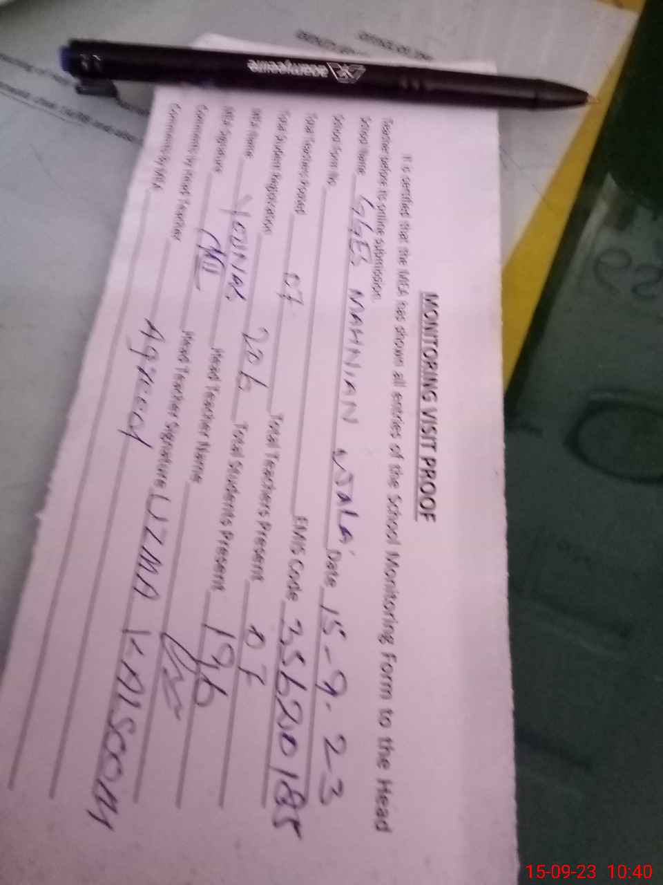 | Certified that this School was Inspected by the Undersigned MEA/DMO Today and the Information Stated Above is as Per Record. | |||||