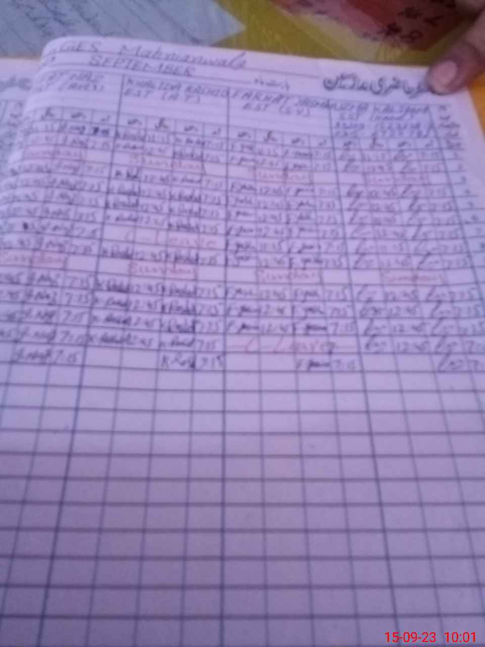 | Monitoring Date: 15-09-2023 | Start Time: 15-09-2023 09:50 AM | End Time: 15-09-2023 10:41 AM | Name of MEA: YO**** AL**** SH**** | |