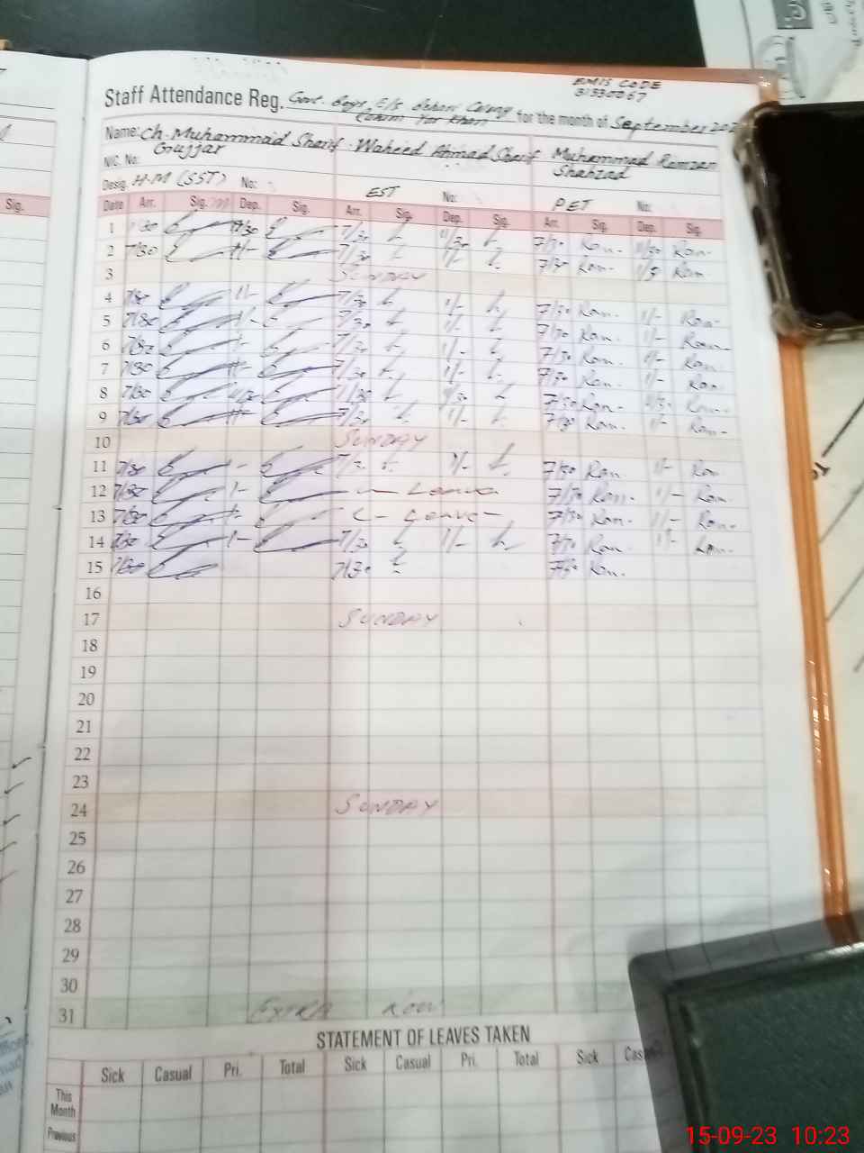 | Name: Mu**** Hu**** Designation: (School Headmaster's/Headmistress's) S.S.T.(arts} Phone/Cell Number: 03**** |