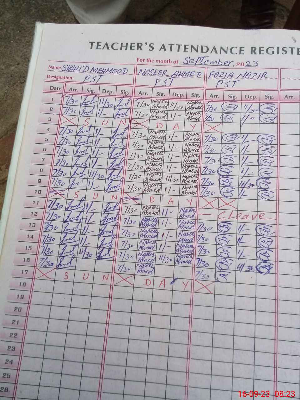 | Name: SH**** Me**** Designation: (School Headmaster's/Headmistress's) PTC/JV Phone/Cell Number: 03**** |