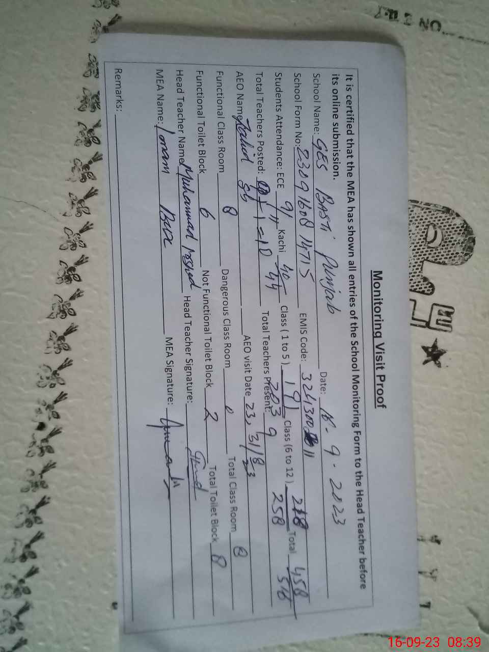 | EMIS Code: 32430011 | Name of School: GES BASTI PUNJAB | |||