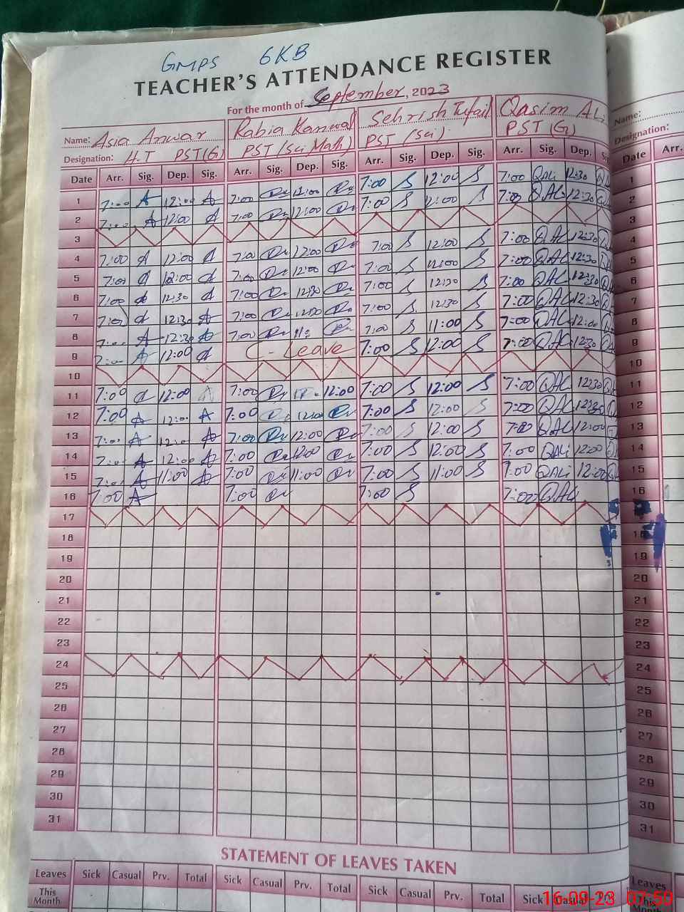 | Name: AS**** AN**** Designation: (School Headmaster's/Headmistress's) PST Phone/Cell Number: 03**** |