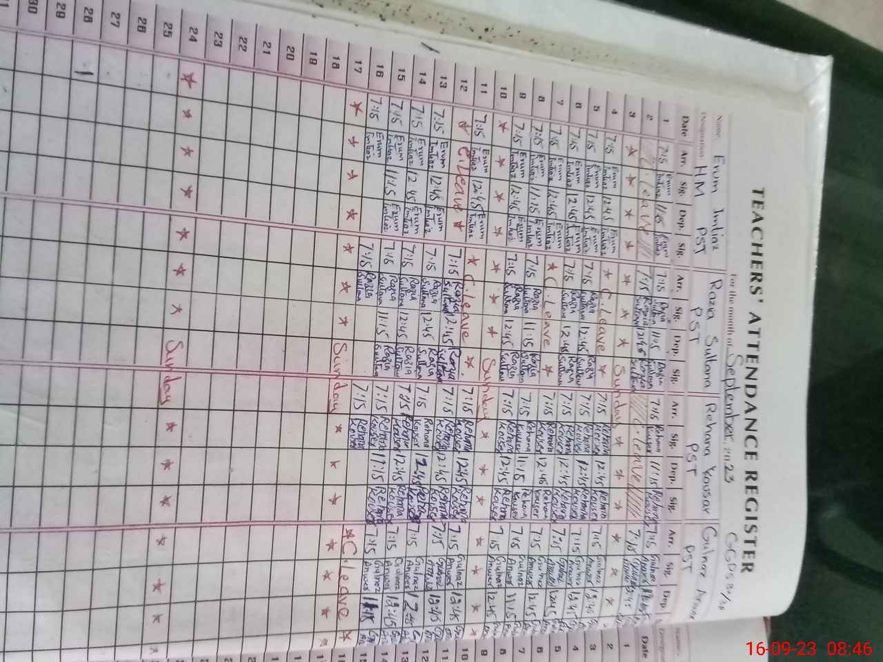 | Monitoring Date: 16-09-2023 | Start Time: 16-09-2023 08:43 AM | End Time: 16-09-2023 08:54 AM | Name of MEA: Ay**** Me**** BN**** 13 | |