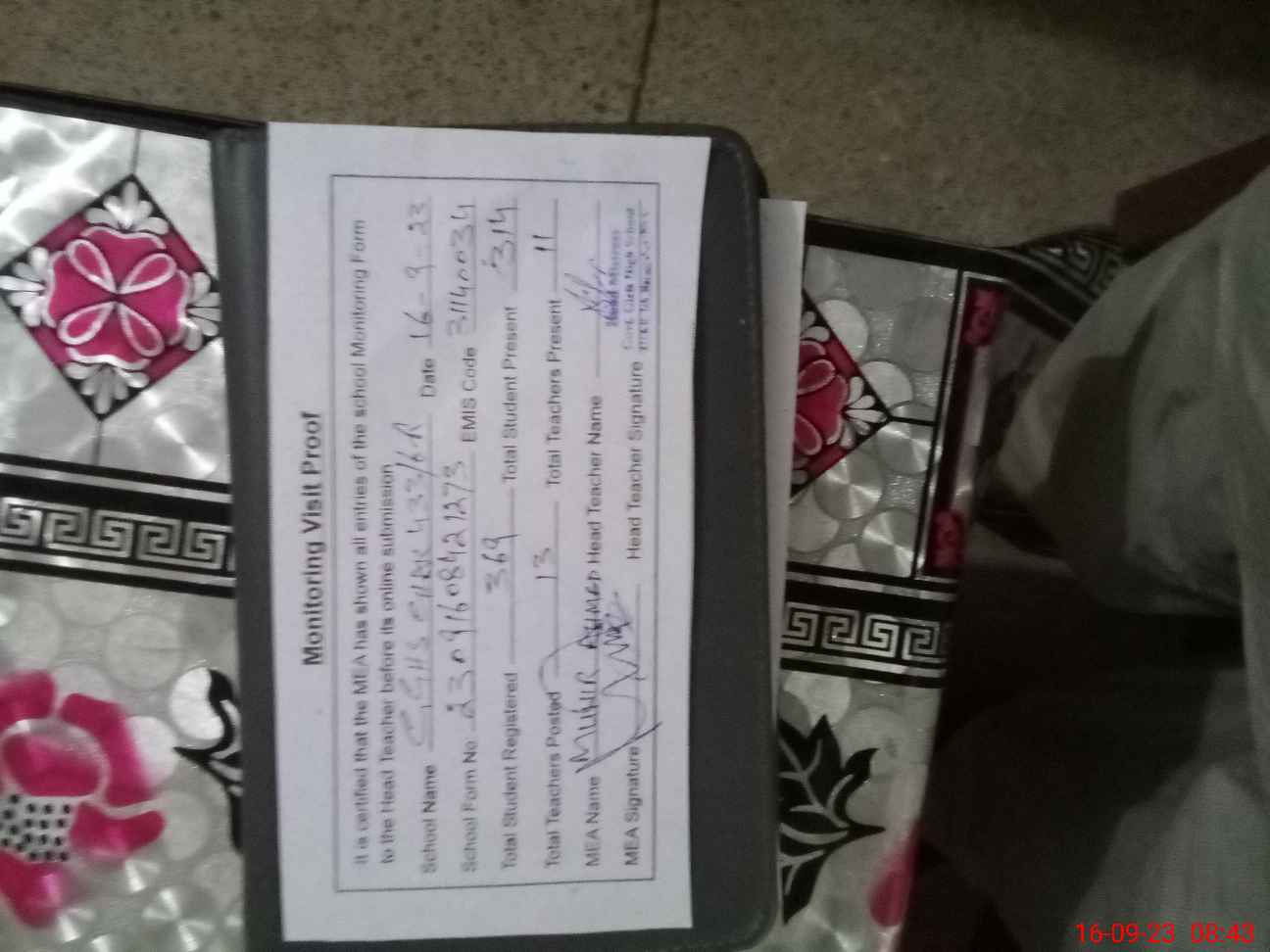| EMIS Code: 31140034 | Name of School: GGHS CHAK NO.433/6-R | |||
