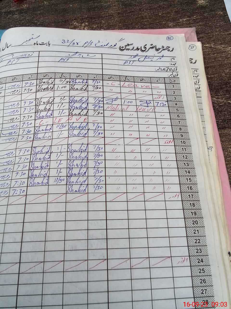 | CNIC | Full Name | Designation | R/C | Absence During Last Calender Month |