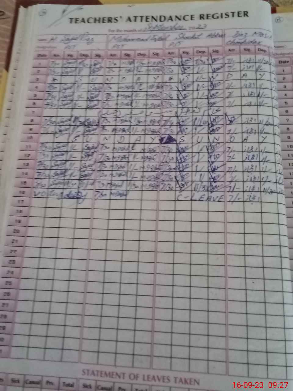 | 33**** | Sh**** Ab**** Ja**** | 1 | 1 | 0 | 0 | 0 | 0 | 0 | 0 | 0 | 0 | 0 | Absent (Un-Authorized) |